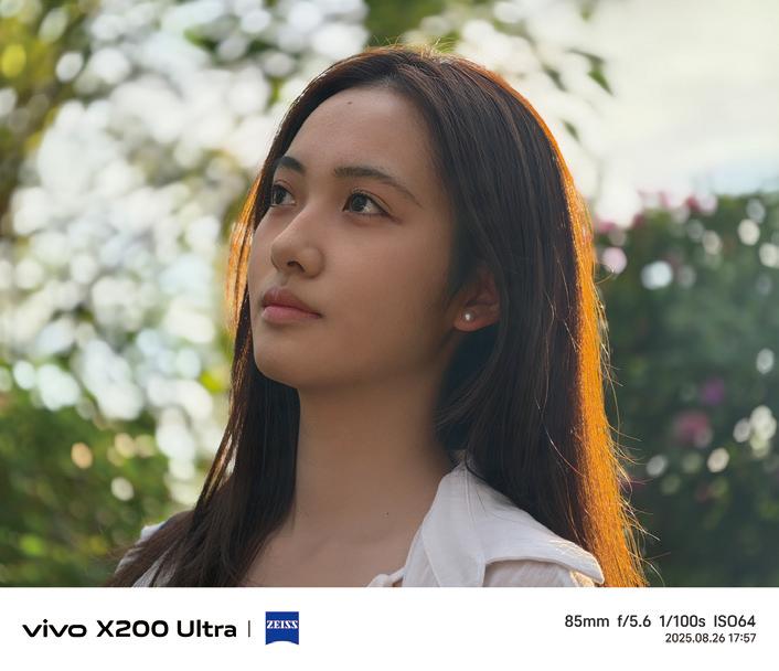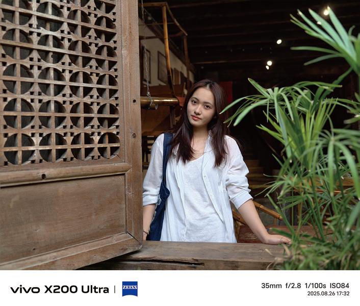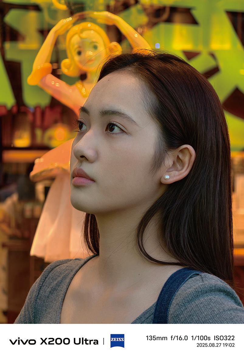 vivo X200 Ultra搭载蔡司三大定焦大师镜头和蓝图自研影像双芯VS1和V3+。三颗定焦镜头分别覆盖14mm、35mm和85mm三个黄金焦段,人像模式支持35mm、50mm、85mm和135mm四个固定焦段(35mm和85mm为原生焦段)。根据专业摄影的创作逻辑和规律,使用中长焦镜头并在适中的距离拍摄,能最大程度地避免畸变,还原人物最真实、最美观的比例,直接提供固定经典人像焦段则能帮助用户在拍摄时更精准地把控画面构图和透视关系。两颗蓝图自研影像芯片VS1和V3+则在后方保持稳定输出,其中VS1负责前置预处理如降噪,V3+负责后处理优化如人像算法,双芯协同能提升所有焦段的画质,尤其是让数码变焦下成像质量提升。