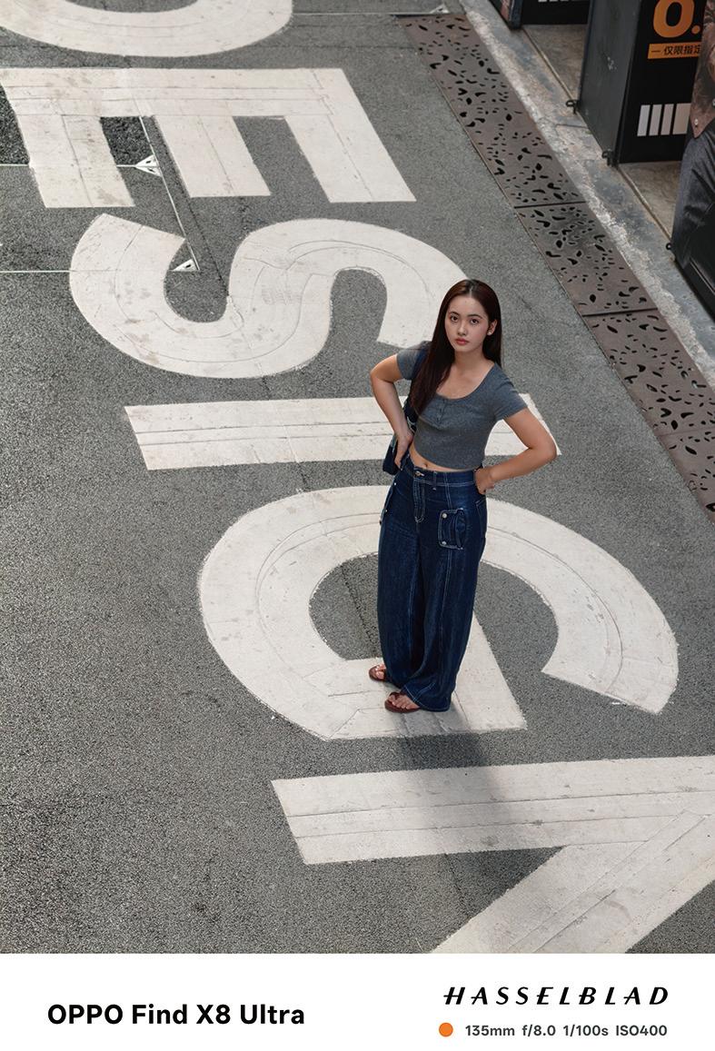 另一组是我们在远处高机位采用135mm焦段拍摄的样张,除了色彩上的差异外,局部放大后,可以看到OPPO Find X8 Ultra拍摄样张中,地面的字母轮廓对比vivo X200 Ultra拍摄样张稍微有些模糊,地表和油漆纹理细节丢失较多。人物面部的妆容上也有较大差异,OPPO Find X8 Ultra的面部后期处理味儿过重,侧脸轮廓甚至出现了一些扭曲,vivo X200 Ultra的面部曲线还是比较流畅。