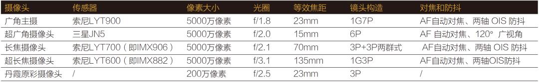 OPPO Find X8 Ultra搭载OPPO LUMO凝光影像系统和超光影五摄影像系统,凝光影像系统专为人像而生,由超光感计算光学系统、超感知数字成像引擎和全链路ProXDR三大模块组成,主要解决人像摄影时主体与环境割裂、色彩失真等问题。超光影五摄影像系统实际由四颗摄像头组成(详见下表),另外一颗丹霞原彩镜头是一颗哈苏多光谱传感器,其核心技术即上述分区色温感知技术,可优化复杂光源下的人物肤色。OPPO Find X8 Ultra人像覆盖23mm~135mm焦段,可自由滑动变焦,构图不被固定焦段束缚,其中23mm、70mm和135mm为原生焦段。