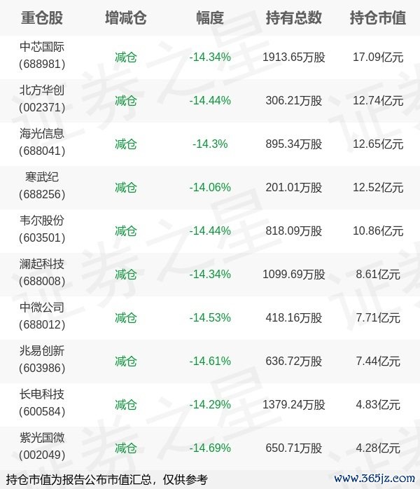 金砖财富 国联安基金黄欣旗下国联安中证全指半导体ETF一季报最新持仓,重仓中芯国际