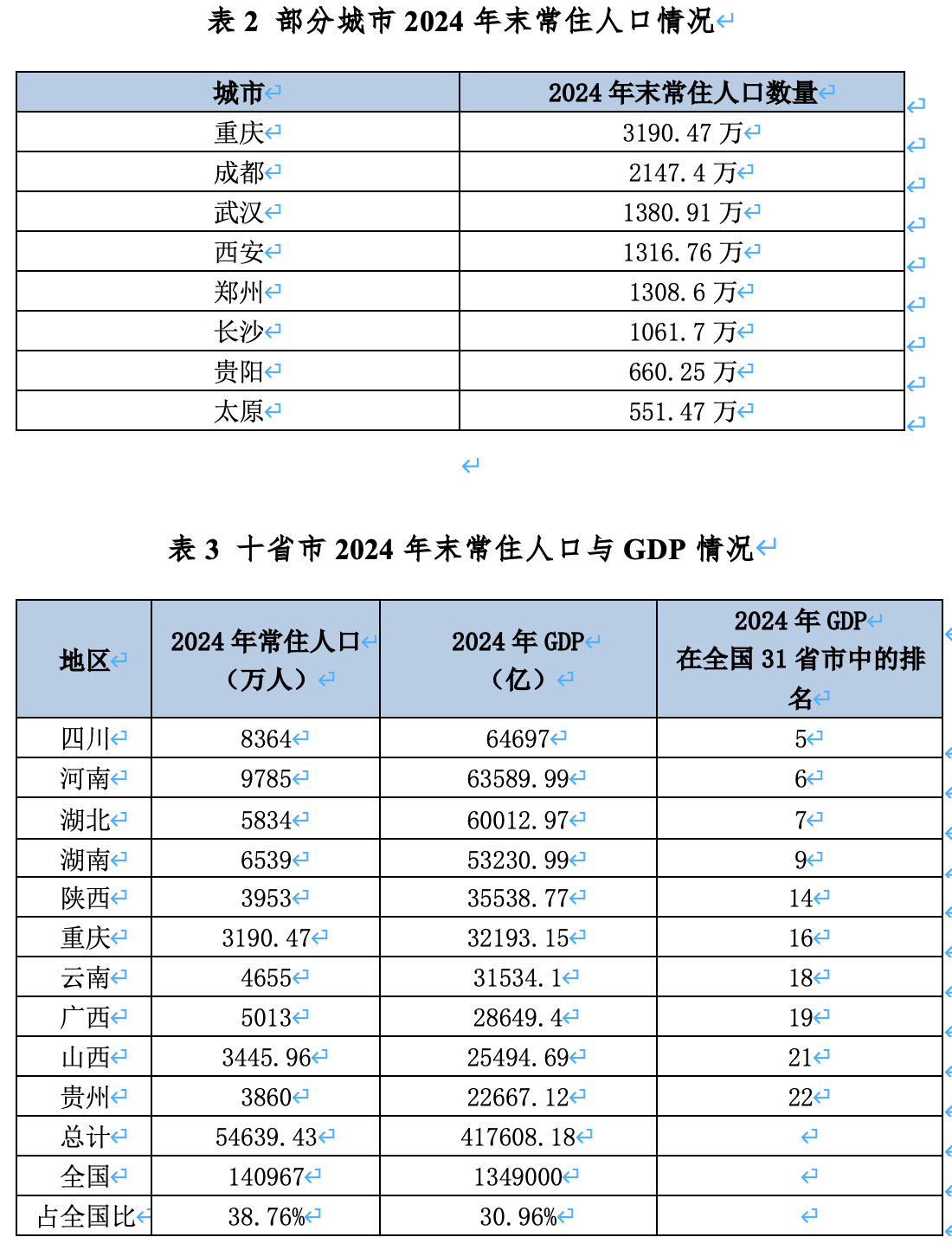 该结构通过层级递进的辐射模式,实现从核心战略支点向泛区域的功能传导与资源整合。立足国内大循环主体定位,以大腹地超大规模产业、人口、市场优势(10省份常住人口5.4亿、GDP约42万亿元,占全国人口总量的39%,经济总量的31%),强化陆路通道与辐射能力,构建面向陆地的开放高地、AI时代创造休闲的乐地、中国内循环的主力军,激发强力驱动的新增长极。